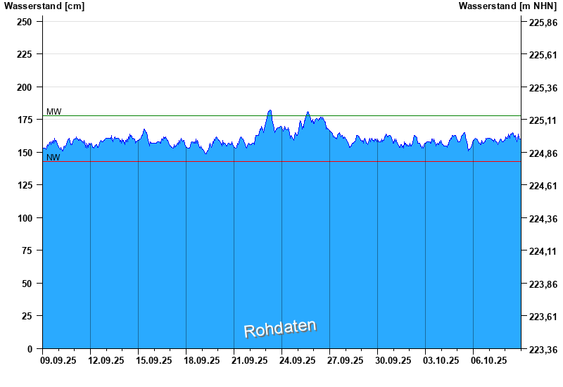 Ausgabe von Abflusswerten wegen Stauregelung erst ab W = 160 cm