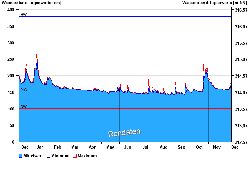 | Date | Mean value [cm] | Maximum [cm] | Minimum [cm] |