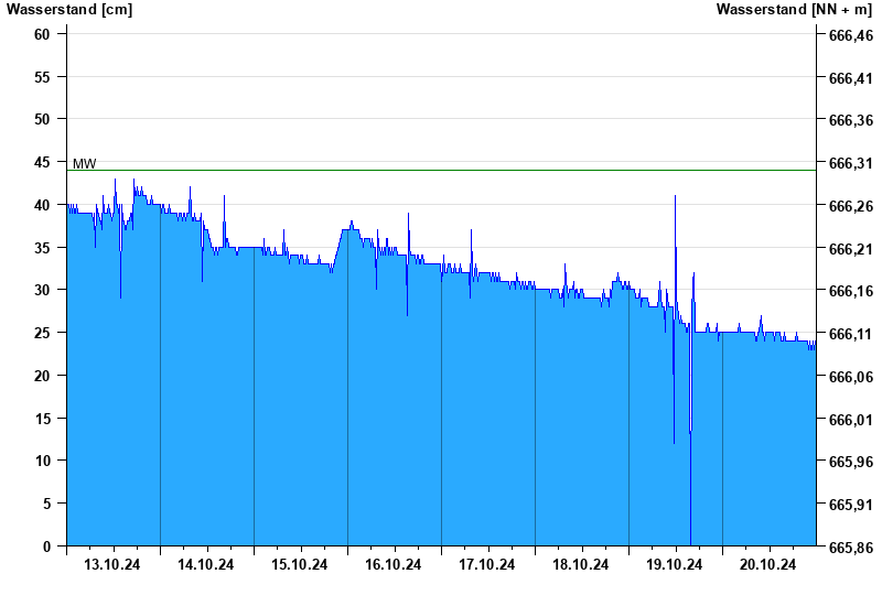 Messwerte beeinflusst durch Kraftwerkssteuerung und Kiesumlagerungen. Kiesanlandungen können bei Niedrigwasser Trockenlegung der Messinstrumente bewirken.