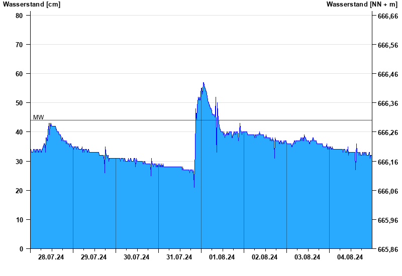 Messwerte beeinflusst durch Kraftwerkssteuerung und Kiesumlagerungen. Kiesanlandungen können bei Niedrigwasser Trockenlegung der Messinstrumente bewirken.