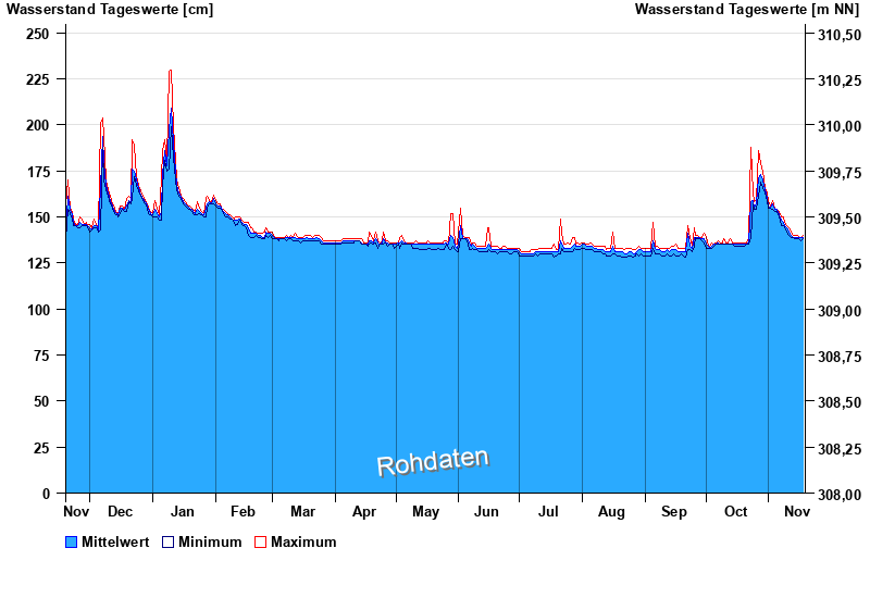 | Date | Mean value [cm] | Maximum [cm] | Minimum [cm] |