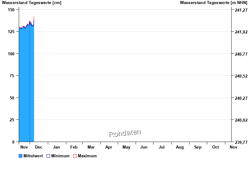 - 330 cm: Reckendorf: Brücke bei Bauhof (Bogenbrücke) Beginn der Überflutung