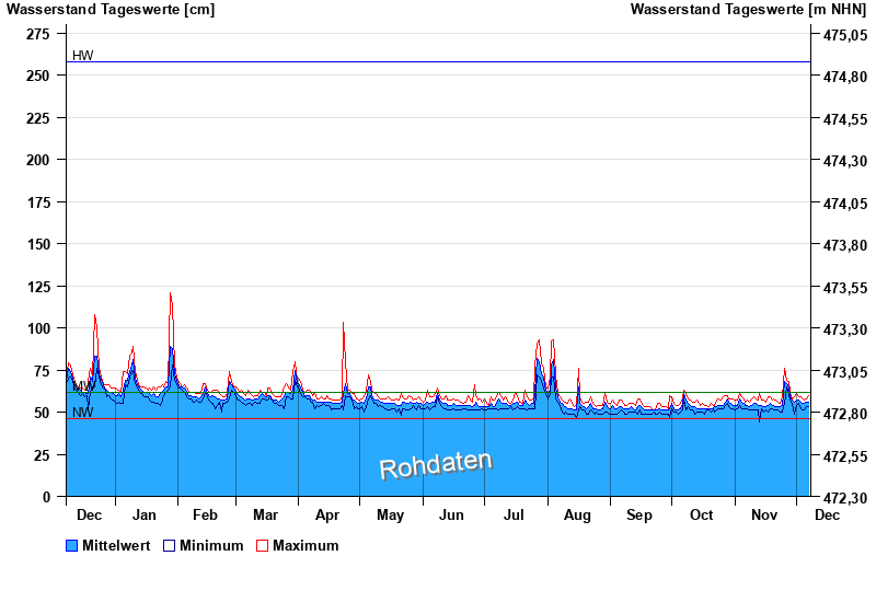 | Date | Mean value [cm] | Maximum [cm] | Minimum [cm] |
