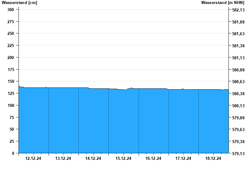 Der Pegel wird durch Baumaßnahmen unterhalb beeinflusst (Rückstau). Entsprechend sind die Abflusswerte nicht korrekt