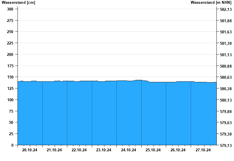 Der Pegel wird durch Baumaßnahmen unterhalb beeinflusst (Rückstau). Entsprechend sind die Abflusswerte nicht korrekt