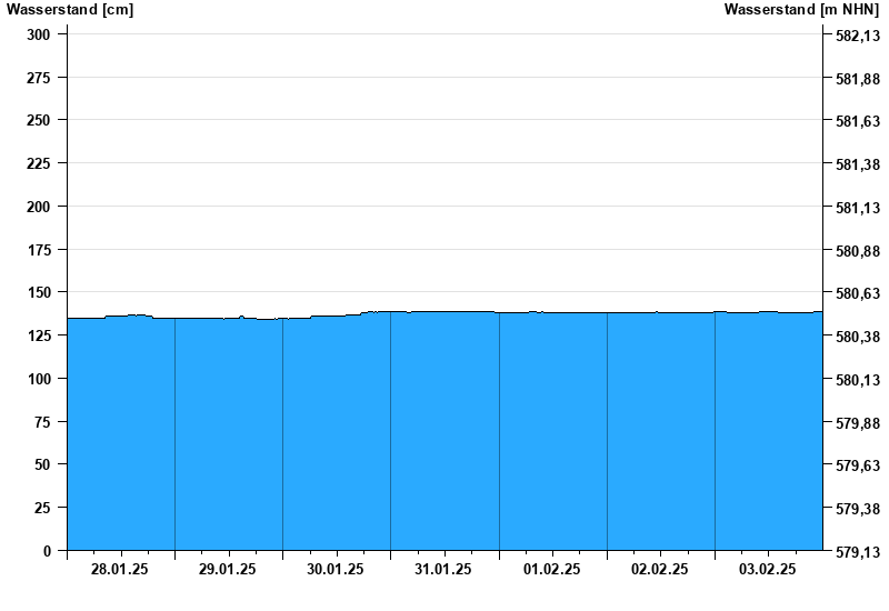 Der Pegel wird durch Baumaßnahmen unterhalb beeinflusst (Rückstau). Entsprechend sind die Abflusswerte nicht korrekt