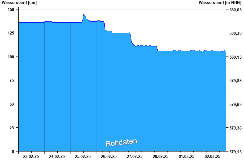 Der Pegel wird durch Baumaßnahmen unterhalb beeinflusst (Rückstau). Entsprechend sind die Abflusswerte nicht korrekt