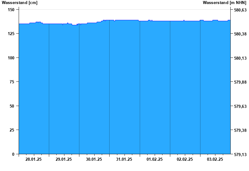 Der Pegel wird durch Baumaßnahmen unterhalb beeinflusst (Rückstau). Entsprechend sind die Abflusswerte nicht korrekt