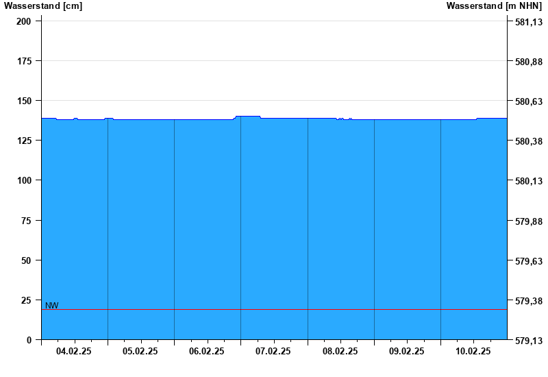 Der Pegel wird durch Baumaßnahmen unterhalb beeinflusst (Rückstau). Entsprechend sind die Abflusswerte nicht korrekt