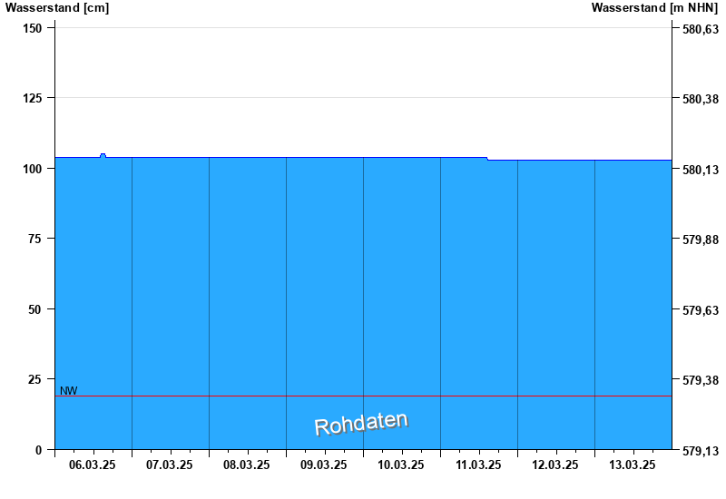 Der Pegel wird durch Baumaßnahmen unterhalb beeinflusst (Rückstau). Entsprechend sind die Abflusswerte nicht korrekt
