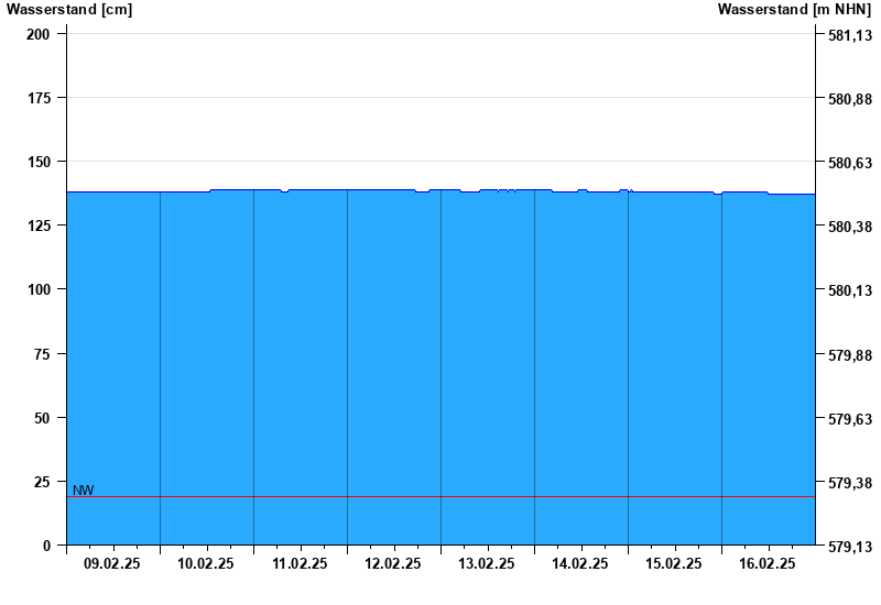Der Pegel wird durch Baumaßnahmen unterhalb beeinflusst (Rückstau). Entsprechend sind die Abflusswerte nicht korrekt