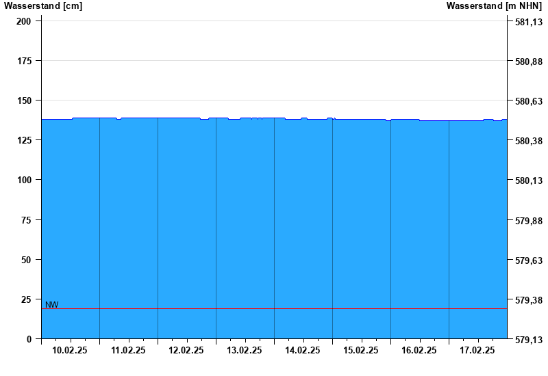 Der Pegel wird durch Baumaßnahmen unterhalb beeinflusst (Rückstau). Entsprechend sind die Abflusswerte nicht korrekt