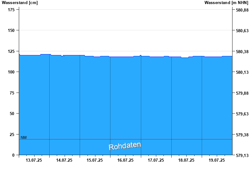 Der Pegel wird durch Baumaßnahmen unterhalb beeinflusst (Rückstau). Entsprechend sind die Abflusswerte nicht korrekt