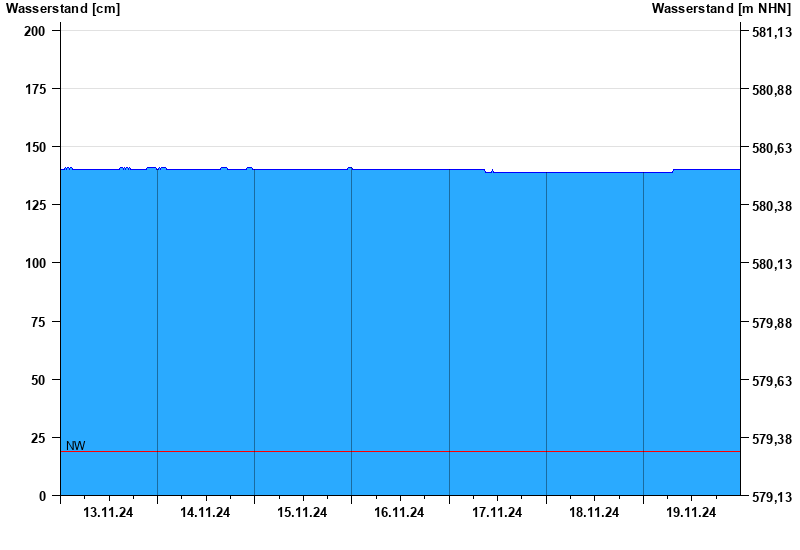 Der Pegel wird durch Baumaßnahmen unterhalb beeinflusst (Rückstau). Entsprechend sind die Abflusswerte nicht korrekt