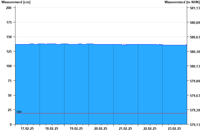 Der Pegel wird durch Baumaßnahmen unterhalb beeinflusst (Rückstau). Entsprechend sind die Abflusswerte nicht korrekt