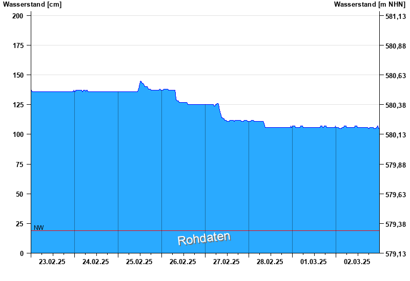 Der Pegel wird durch Baumaßnahmen unterhalb beeinflusst (Rückstau). Entsprechend sind die Abflusswerte nicht korrekt