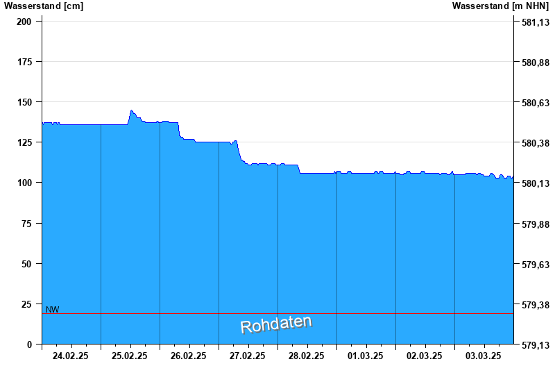 Der Pegel wird durch Baumaßnahmen unterhalb beeinflusst (Rückstau). Entsprechend sind die Abflusswerte nicht korrekt