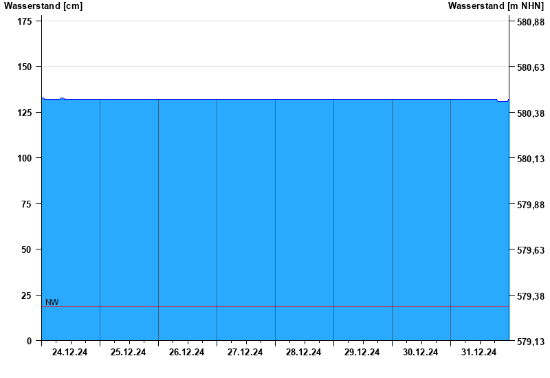 Der Pegel wird durch Baumaßnahmen unterhalb beeinflusst (Rückstau). Entsprechend sind die Abflusswerte nicht korrekt