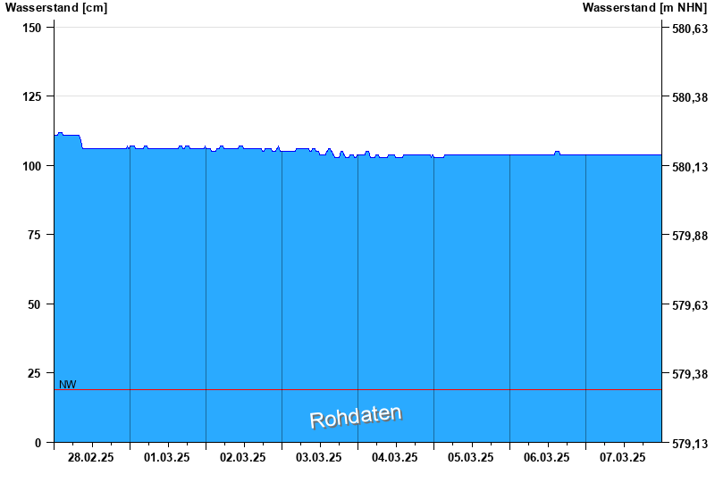 Der Pegel wird durch Baumaßnahmen unterhalb beeinflusst (Rückstau). Entsprechend sind die Abflusswerte nicht korrekt