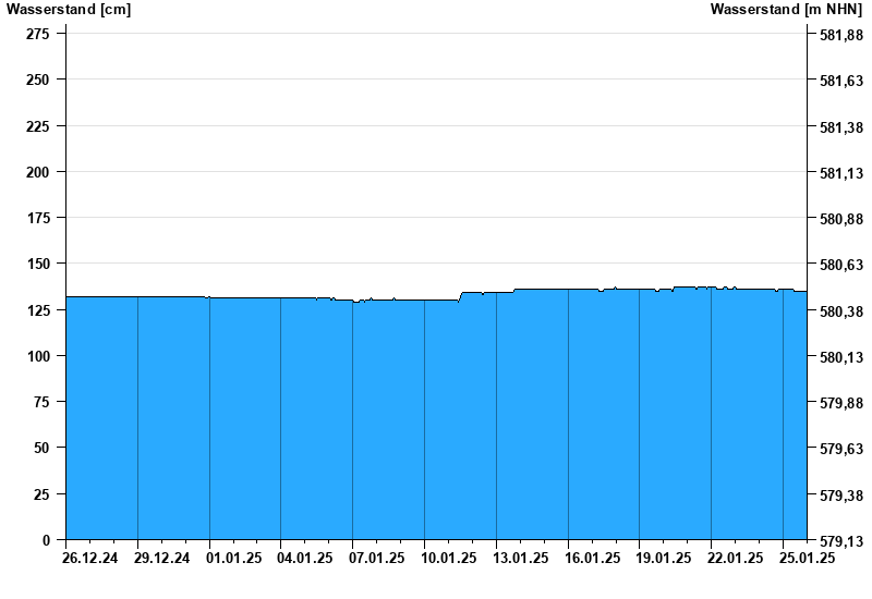 Der Pegel wird durch Baumaßnahmen unterhalb beeinflusst (Rückstau). Entsprechend sind die Abflusswerte nicht korrekt