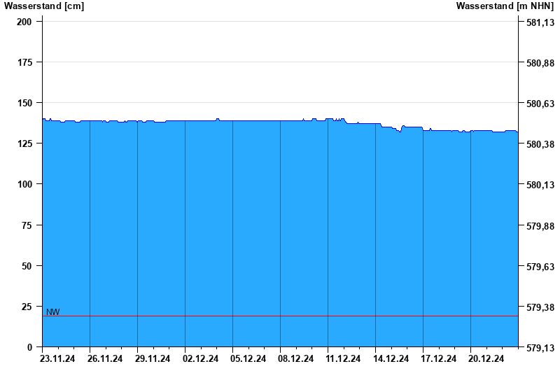 Der Pegel wird durch Baumaßnahmen unterhalb beeinflusst (Rückstau). Entsprechend sind die Abflusswerte nicht korrekt