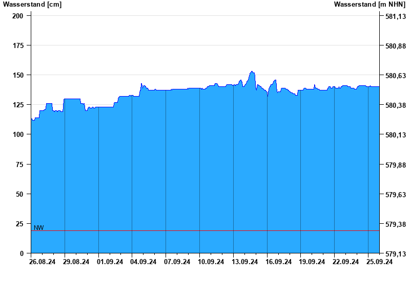 Der Pegel wird durch Baumaßnahmen unterhalb beeinflusst (Rückstau). Entsprechend sind die Abflusswerte nicht korrekt