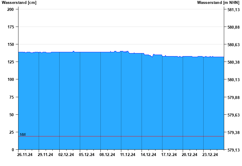 Der Pegel wird durch Baumaßnahmen unterhalb beeinflusst (Rückstau). Entsprechend sind die Abflusswerte nicht korrekt