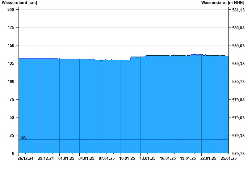 Der Pegel wird durch Baumaßnahmen unterhalb beeinflusst (Rückstau). Entsprechend sind die Abflusswerte nicht korrekt