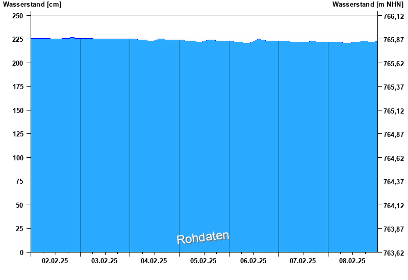 Störung wegen Stromversorgungsprobleme. Der Wasserstand wird durch starke Kiesumlagerungen beeinflusst. Der hier gezeigte Abfluss kann entsprechend stark vom tatsächlichen Abfluss abweichen.