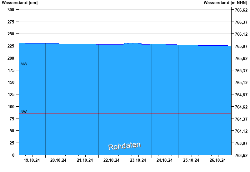 Störung wegen Stromversorgungsprobleme. Der Wasserstand wird durch starke Kiesumlagerungen beeinflusst. Der hier gezeigte Abfluss kann entsprechend stark vom tatsächlichen Abfluss abweichen.