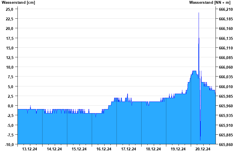 Messwerte beeinflusst durch Kraftwerkssteuerung und Kiesumlagerungen. Kiesanlandungen können bei Niedrigwasser Trockenlegung der Messinstrumente bewirken.