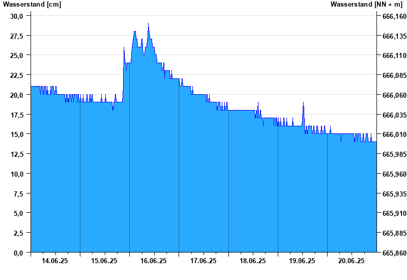 Messwerte beeinflusst durch Kraftwerkssteuerung und Kiesumlagerungen. Kiesanlandungen können bei Niedrigwasser Trockenlegung der Messinstrumente bewirken.