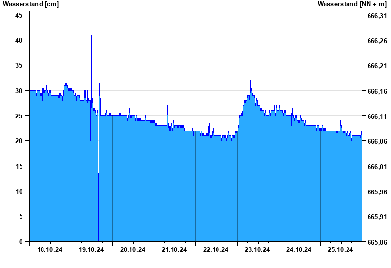 Messwerte beeinflusst durch Kraftwerkssteuerung und Kiesumlagerungen. Kiesanlandungen können bei Niedrigwasser Trockenlegung der Messinstrumente bewirken.
