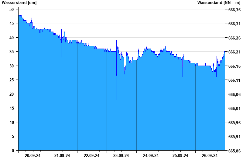 Messwerte beeinflusst durch Kraftwerkssteuerung und Kiesumlagerungen. Kiesanlandungen können bei Niedrigwasser Trockenlegung der Messinstrumente bewirken.