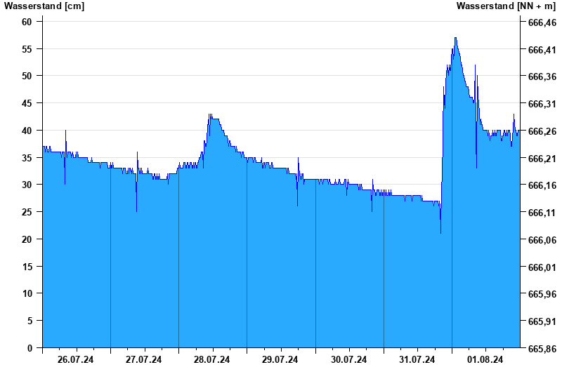 Messwerte beeinflusst durch Kraftwerkssteuerung und Kiesumlagerungen. Kiesanlandungen können bei Niedrigwasser Trockenlegung der Messinstrumente bewirken.