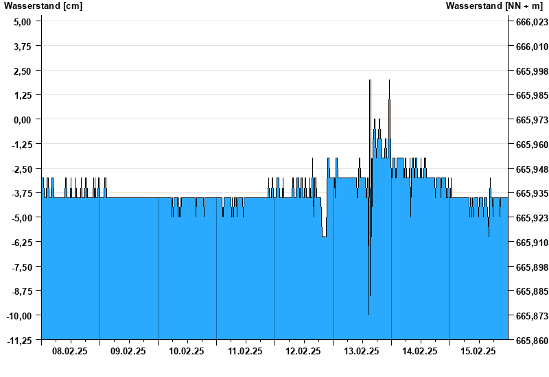 Messwerte beeinflusst durch Kraftwerkssteuerung und Kiesumlagerungen. Kiesanlandungen können bei Niedrigwasser Trockenlegung der Messinstrumente bewirken.
