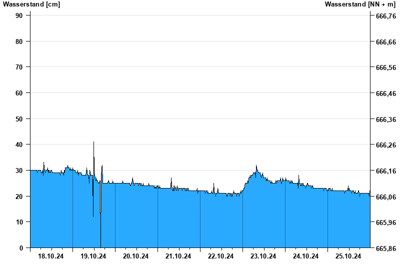 Messwerte beeinflusst durch Kraftwerkssteuerung und Kiesumlagerungen. Kiesanlandungen können bei Niedrigwasser Trockenlegung der Messinstrumente bewirken.