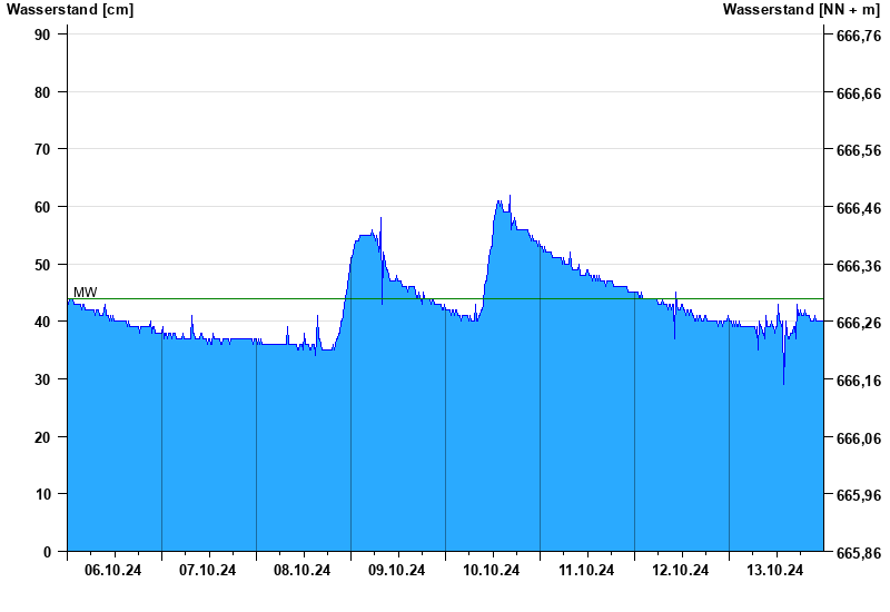 Messwerte beeinflusst durch Kraftwerkssteuerung und Kiesumlagerungen. Kiesanlandungen können bei Niedrigwasser Trockenlegung der Messinstrumente bewirken.