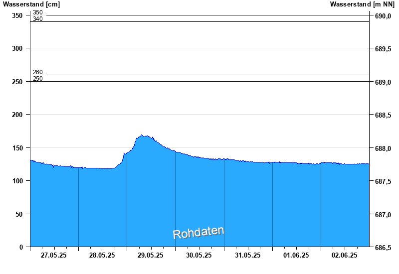 - 340 cm: Garmisch: Siedlung Loisachauen bedroht.