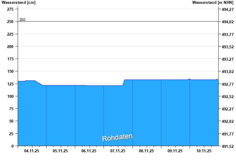 Waterlevel from 04.11.2025 to 10.11.2025| Date | Waterlevel [cm] |