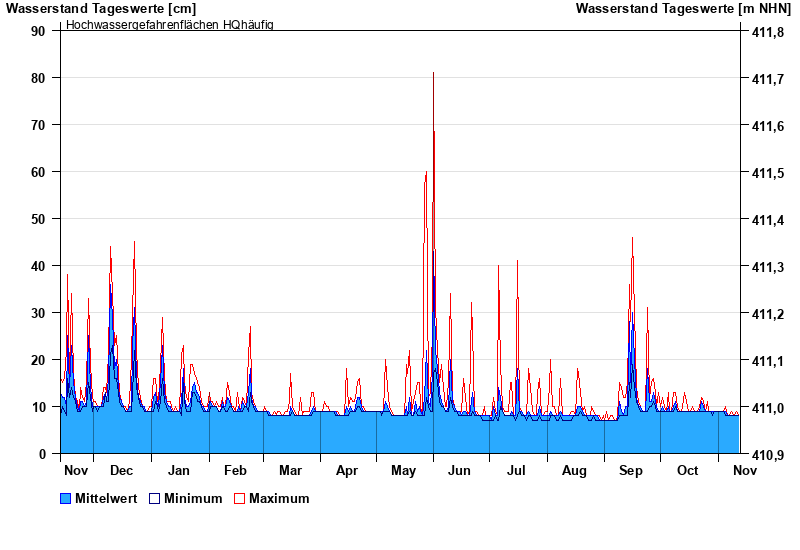 - Hochwassergefahrenfläche HQhäufig 90 cm