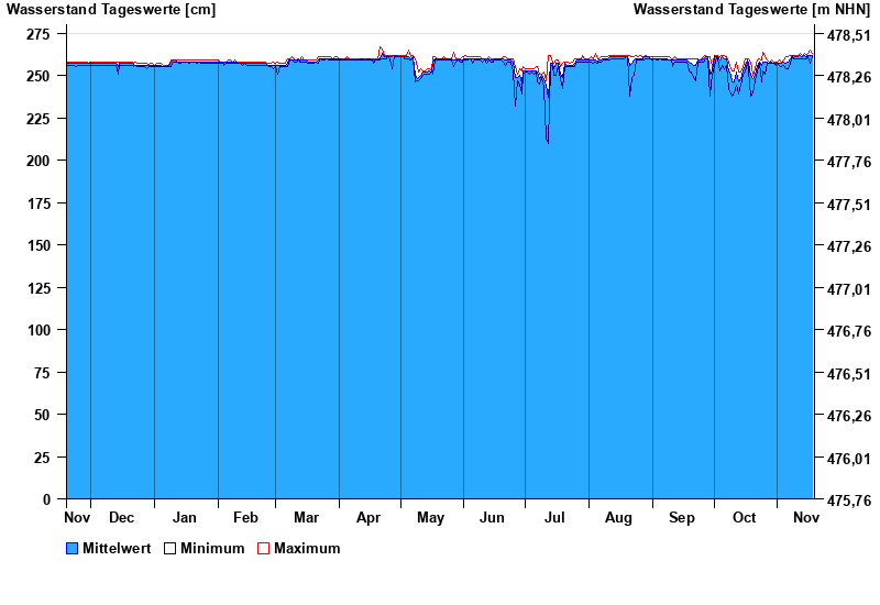 | Date | Mean value [cm] | Maximum [cm] | Minimum [cm] |