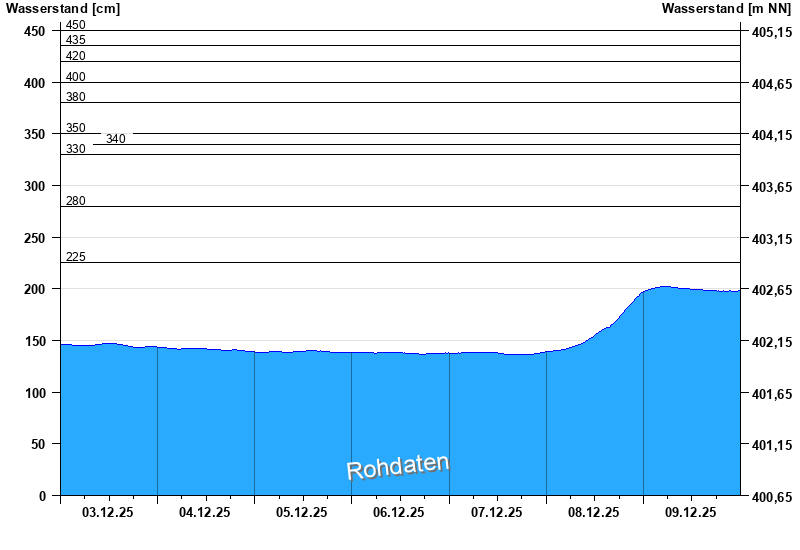 - 225 cm: Hoppingen: Überflutung des Stegs nach Ronheim