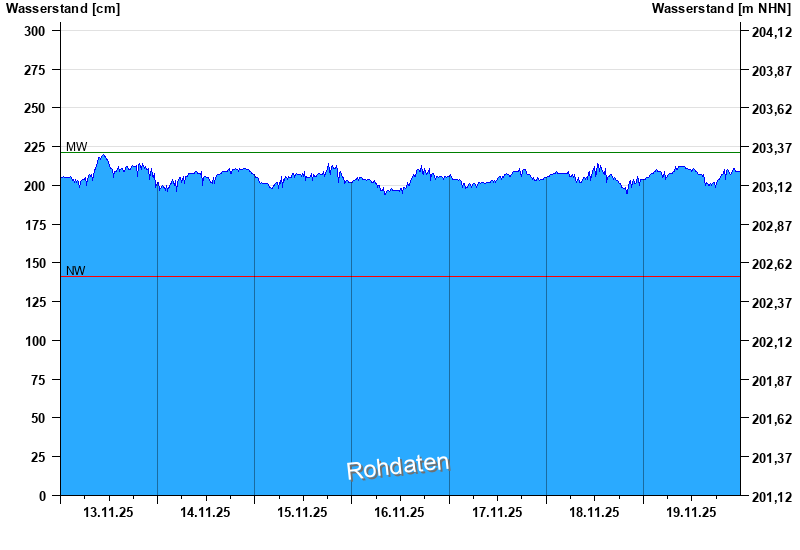 Ausgabe von Abflusswerten wegen Stauregelung erst ab W = 215 cm