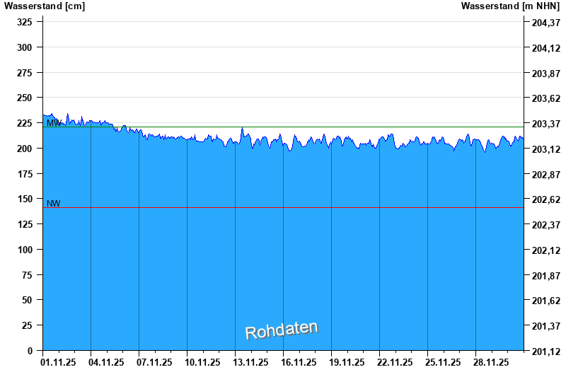 Ausgabe von Abflusswerten wegen Stauregelung erst ab W = 215 cm