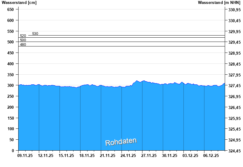 Ausgabe von Abflusswerten wegen Stauregelung erst ab W = 327 cm
