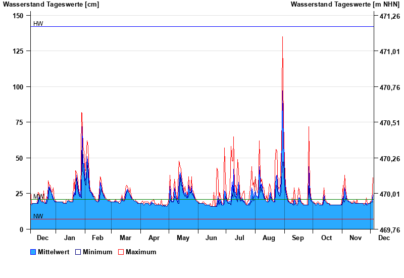 | Date | Mean value [cm] | Maximum [cm] | Minimum [cm] |