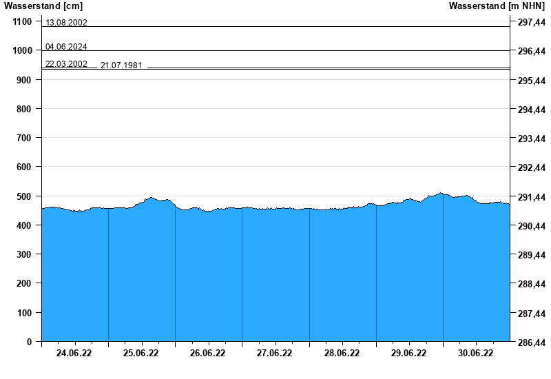 - 04.06.2024 Wasserstand: 998 cm