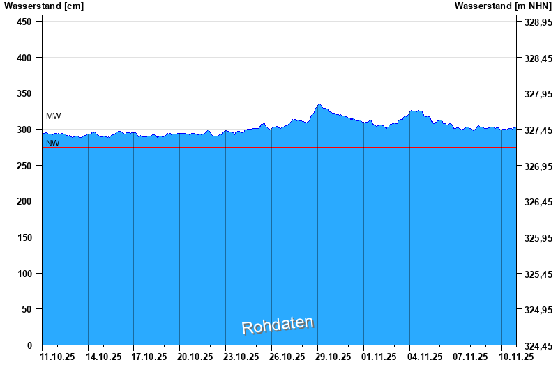 Ausgabe von Abflusswerten wegen Stauregelung erst ab W = 327 cm