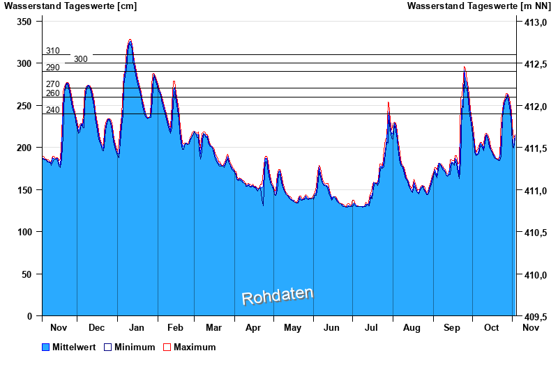- 240 cm: Altmühltal: Beginn der Ausuferung zwischen Aha und Bubenheim